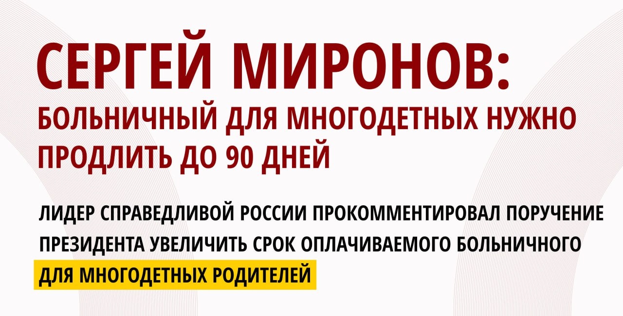 СЕРГЕЙ МИРОНОВ: БОЛЬНИЧНЫЙ ДЛЯ МНОГОДЕТНЫХ НУЖНО ПРОДЛИТЬ ДО 90 ДНЕЙ