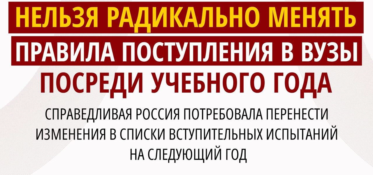 СПРАВЕДЛИВАЯ РОССИЯ потребовала перенести изменения в списки вступительных испытаний на следующий год.