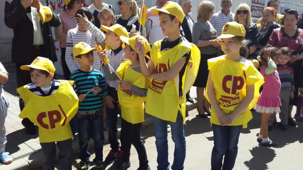 Демонстрации предшествовала фотосессия, организованная региональным отделением партии, где все желающие могли запечатлеть себя на фоне развевающихся полотен партии и одетой в национальные осетинские костюмы молодежи.