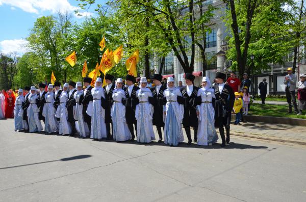 Шествие закончилось импровизированным праздничным концертом с танцами, с участием детского ансамбля "Дети Гор", художественным руководителем которого является народный артист Северной Осетии Станислав Козаев.