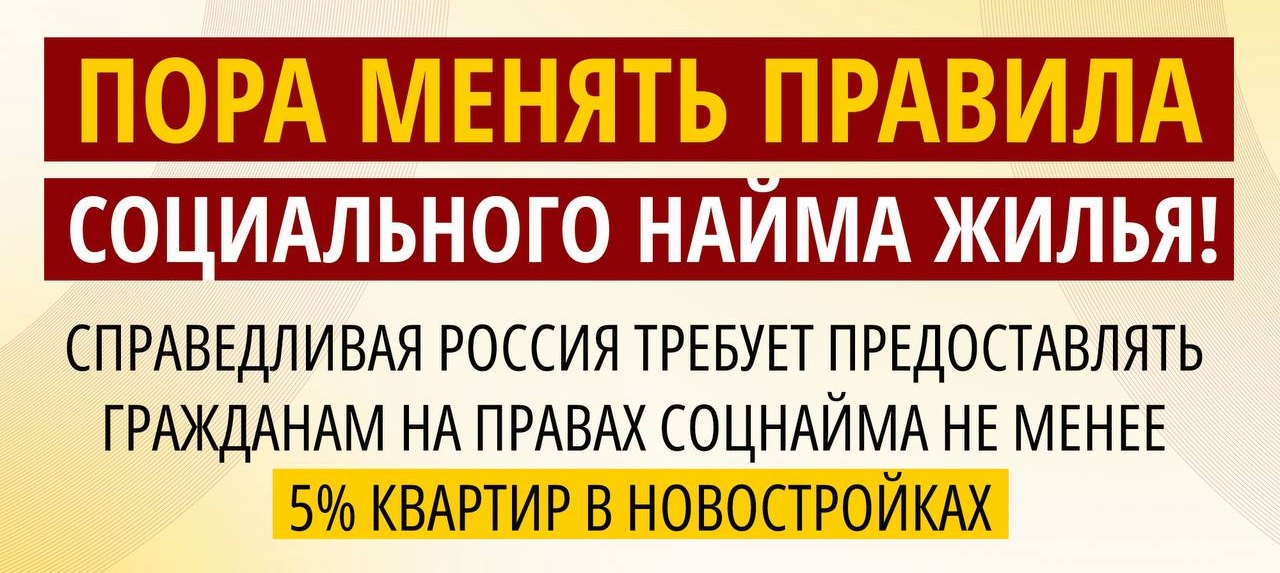 СПРАВЕДЛИВАЯ РОССИЯ требует предоставлять гражданам на правах соцнайма не менее 5% квартир в новостройках.